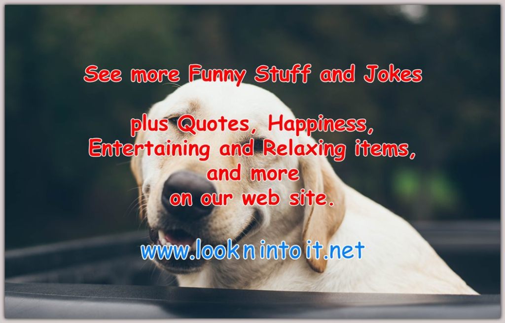 Funny Stuff to give you Enjoyment Share this:Post Email a link to a friend (Opens in new window) Email Like Loading...